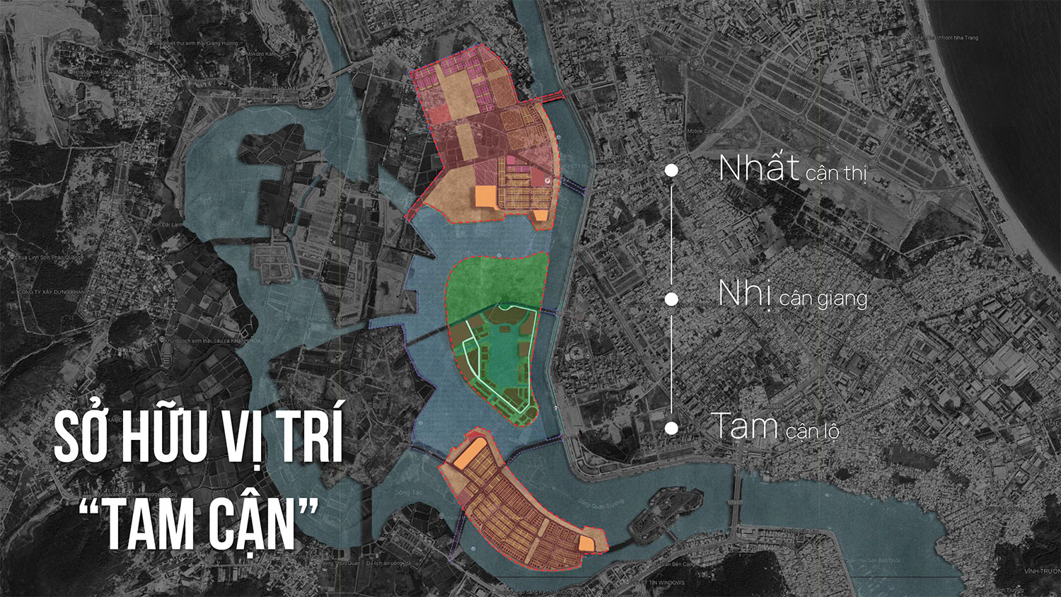 Khu đô thị hỗn hợp Nha Trang (Sun Charmora City Nha Trang) được Sun Group triển khai trên tổng diện tích rộng lớn khoảng 226,7 ha với một quy hoạch tổng thể độc đáo, tận dụng tối đa lợi thế ba mặt giáp sông (sông Quán Trường và sông Tắc) để kiến tạo nên mô hình “thành phố ba đảo” đẳng cấp.